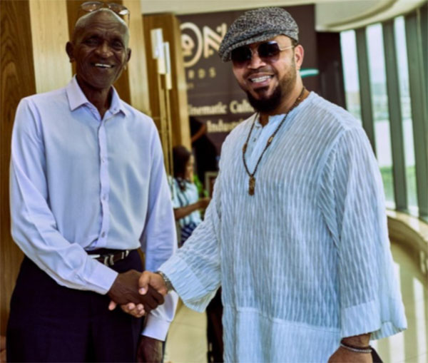 Legendary Ugandan actor Michael Wawuyo Sr shares a warm handshake with Nigerian producer and actor Ramsey Nouah during last year’s iKON Activate engagement in Nigeria